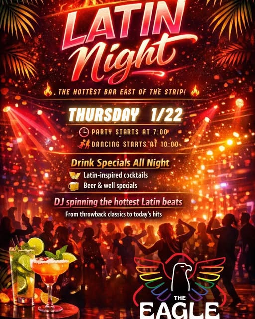 Latinos! Las Vegas Eagle has a new night for you! Thursday from 7 p.m. till late! You got specials and everything! Check out the new bar 3430 E. Tropicana Ave., Suite 47, Las Vegas, NV 89121