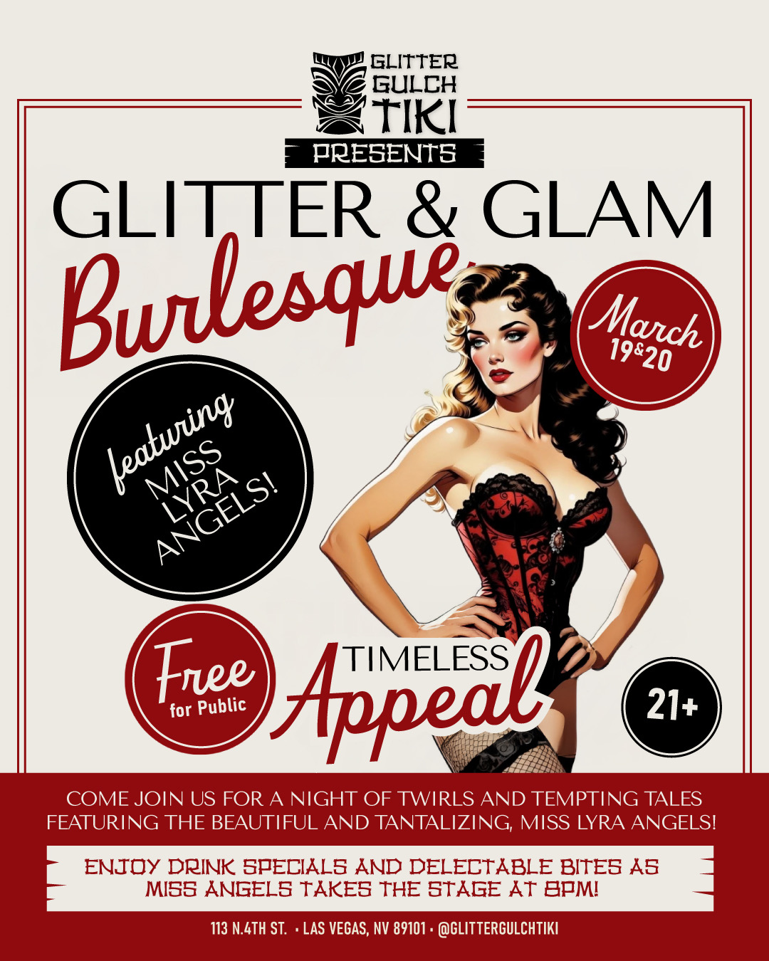 Glitter Gulch Tiki Brings “Glitter & Glam Burlesque” March 19-20